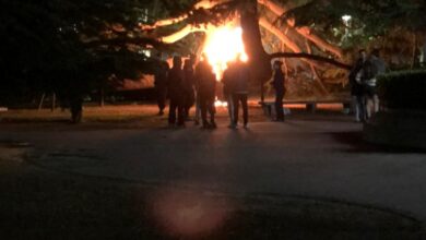 Policial | Incendio intencional en la plaza central: tres hombres identificados por las cámaras del CEM