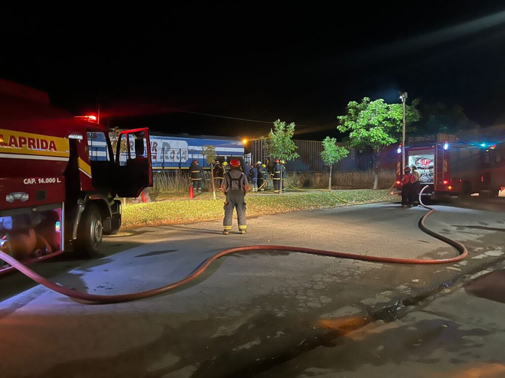 Minutos después de las 22 horas de este miércoles el Centro de Emergencia Municipal se comunica con el cuartel de Bomberos Voluntarios de Laprida para informarle de un incendio en la locomotora de una formación ferroviaria carguera que hacía su paso por nuestra ciudad desde Bahía Blanca hacía Capital Federal, cuando por causas que se desconocen comienza a tomar fuego en la parte de las ruedas trasera de la máquina de la formación.