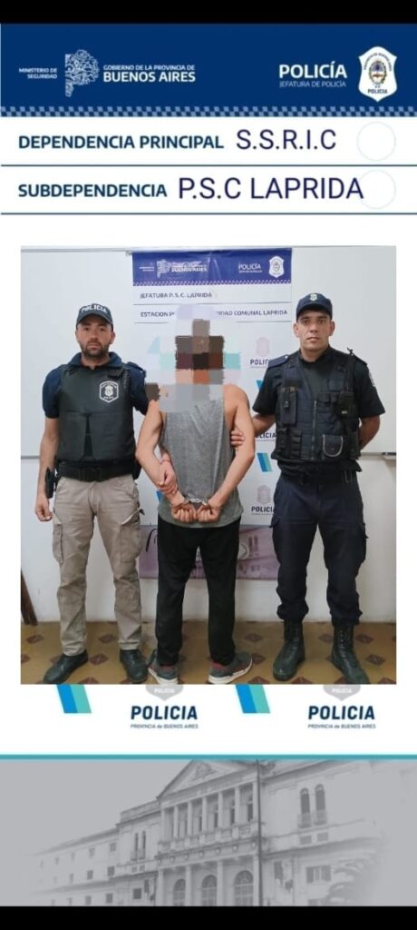 Durante el desarrollo de la diligencia judicial, el imputado se negó a cumplimentar la requisa personal ordenada por el magistrado interviniente e intentó darse a la fuga del lugar. Ante esta situación, el personal policial procedió a reducirlo y aprehenderlo a pocos metros de la vivienda, siendo posteriormente trasladado y alojado en los calabozos de la Estación de Policía Comunal de Laprida.