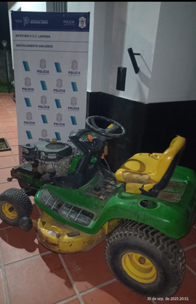 Como resultado de las tareas realizadas, se logró identificar al autor, un hombre mayor de edad oriundo de Olavarría, y recuperar los elementos sustraídos: un tractor cortapasto marca John Deere y una notebook EXO.