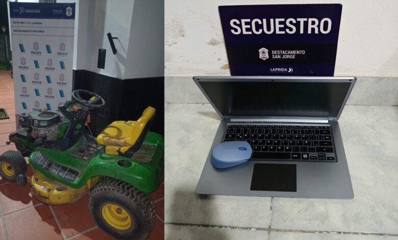 La Policía de San Jorge recuperó un tractor y una notebook robados; el autor fue identificado y notificado en la causa