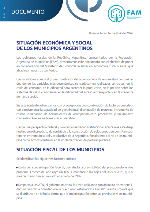 En ese contexto, advirtieron que, de no mediar respuestas concretas, el conflicto podría profundizarse en las próximas semanas, en un escenario donde los municipios aseguran estar cada vez más limitados para garantizar servicios básicos y asistencia social.