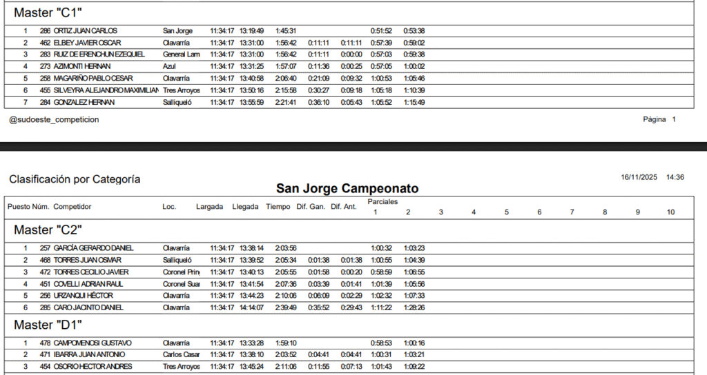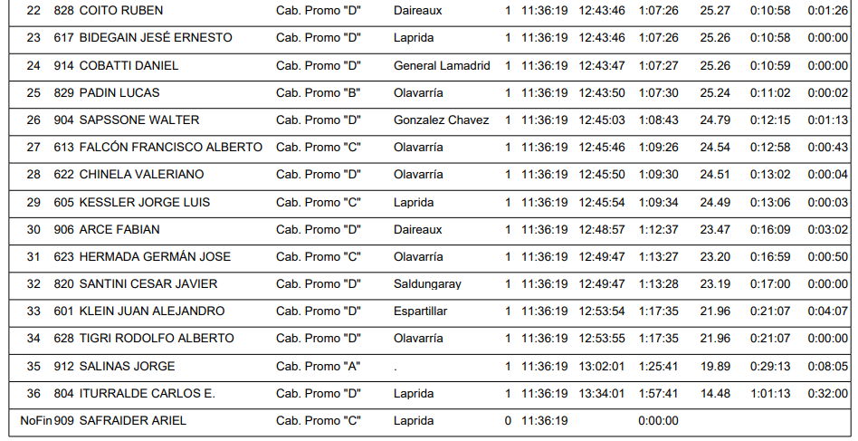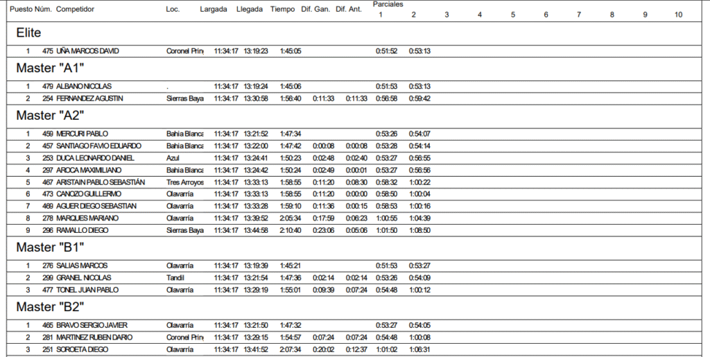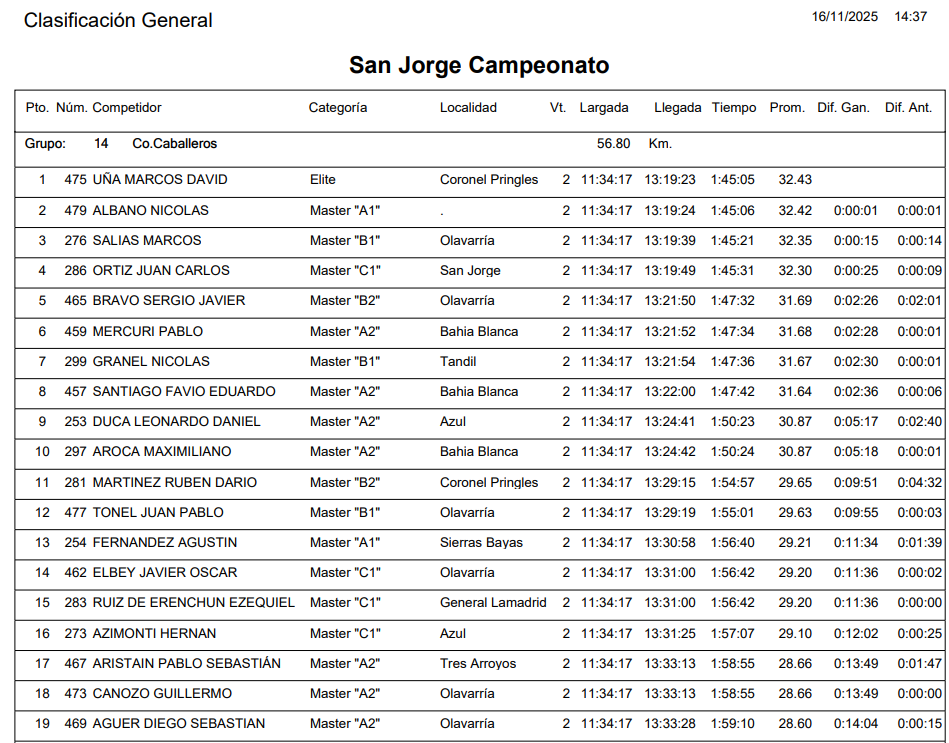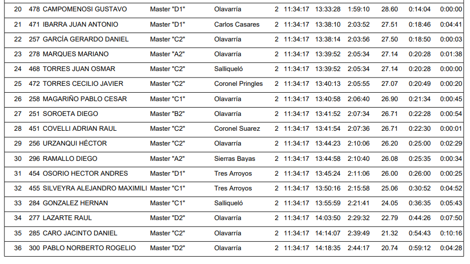 Marcos David Uña de la ciudad de Coronel Pringles (Elite) fue el ganador de los 56K Caballeros, por detrás llegó Nicolás Albano (Master A1) y Marcos Salias (Master B1) ambos de Olavarría.