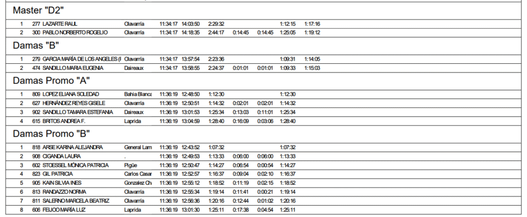 La prueba de 56K femenino solo dos participantes tuvo, María de los Ángeles García (damas B) de Olavarría y el segundo lugar fue para María Eugenia Sandillo (damas B) de Daireaux.