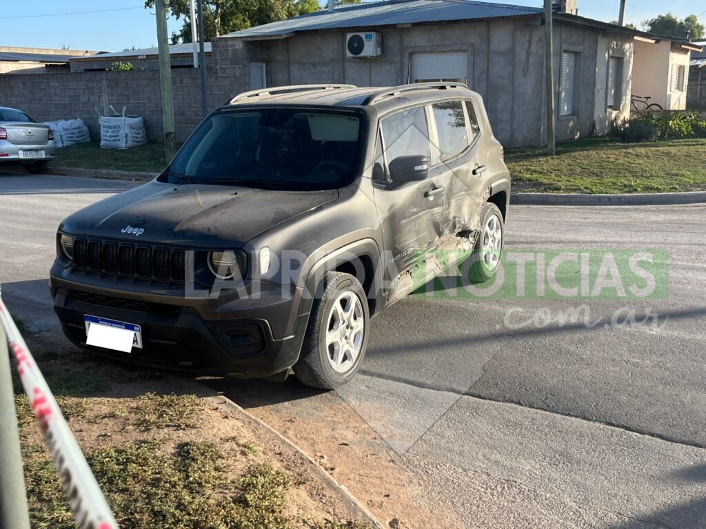 Un Toyota Hilux color blanca, conducida por un masculino mayor de edad que circulaba por 25 de mayo desde Rivadavia a Lavalle, llegando a la esquina de la última calle mencionada termina colisionado con una Jeep Renegade color gris, la misma era conducida por una femenina mayor de edad y al menos dos menores de edad.