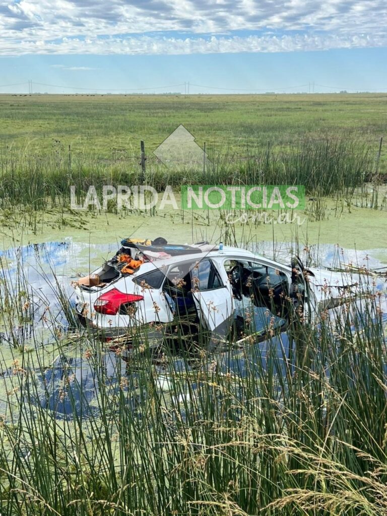 Por causas que se tratan de establecer, un automóvil Ford Focus, en el que se desplazaba una pareja oriunda de Bahía Blanca, sufrió un despiste que derivó en el siniestro. Personas que transitaban por el lugar asistieron de inmediato a las víctimas y lograron rescatarlas del interior del vehículo.