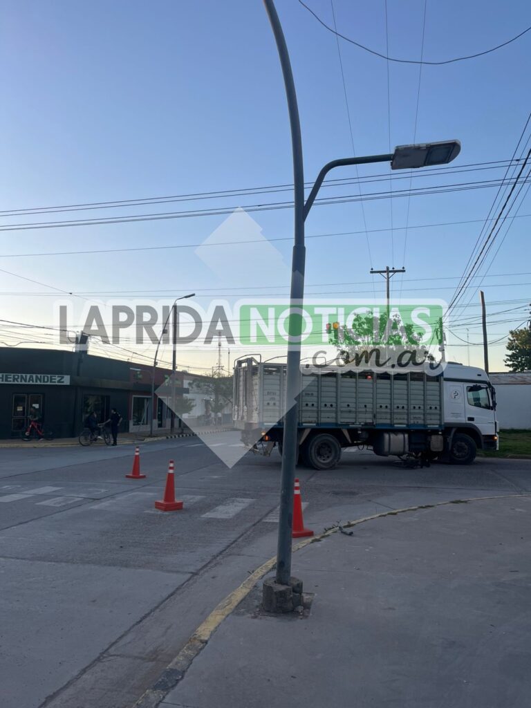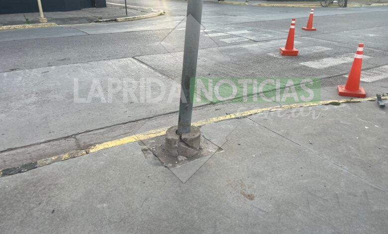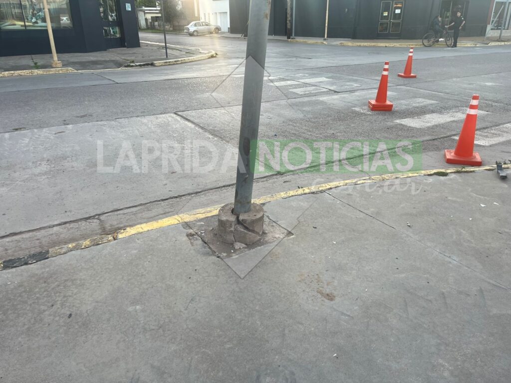 La estructura fue impactada por un vehículo y quedó inclinada, con riesgo de caída en avenida Pedro Pereyra casi Sancholuz